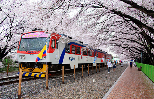 | 진해의 대표적인 벚꽃명소로 약 1.5km에 걸쳐 하천 일대에 눈부신 벚꽃터널이 형성되는 곳이다. MBC드라마 ‘로망스’의 배경이 된 여좌천로망스다리는 진해를 찾는 관광객들의 벚꽃 나들이 코스로 유명하며 경관조명 시설이 갖추어져 있어 늦은 밤에도 아름답고 탐스러운 벚꽃 세상을 누구나 자유롭게 만끽할 수 있다. (2023-2024 한국관광 100선 선정) |