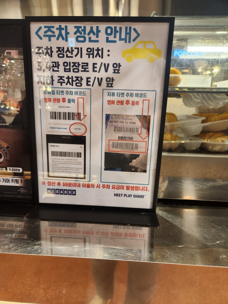 영화 티켓을 인증하면 주차는 어지간 하면 다 무료이니