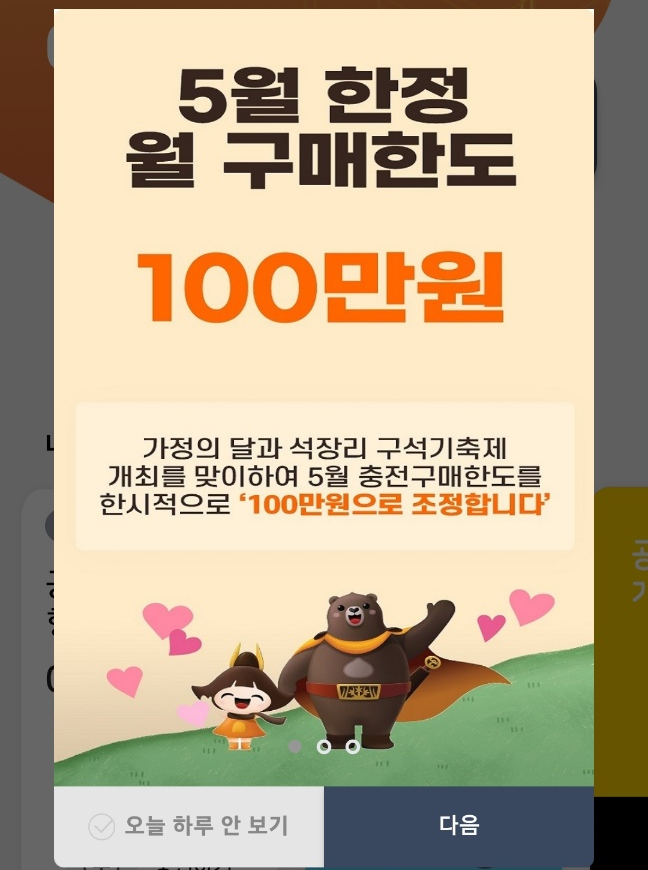 오늘은 5월 가정의 달을 맞이하여 지역상품권들의 한시적 변동사항에 대해 안내드리고자 합니다~