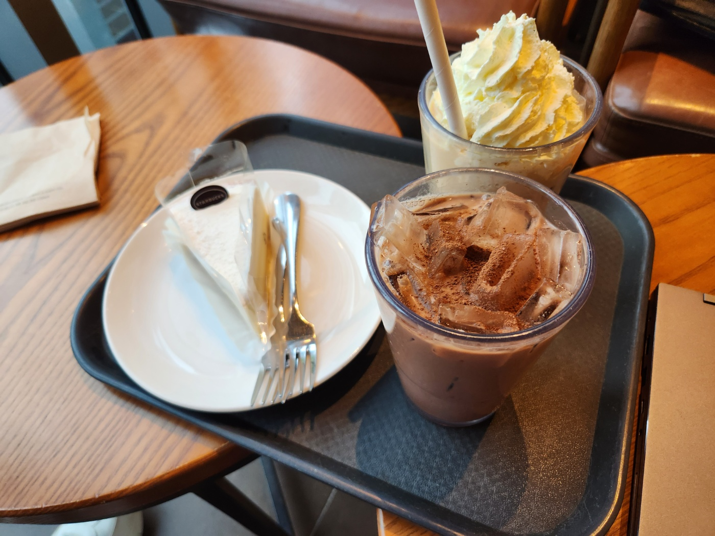 주문한 음료와 케잌이 나왔습니다.
